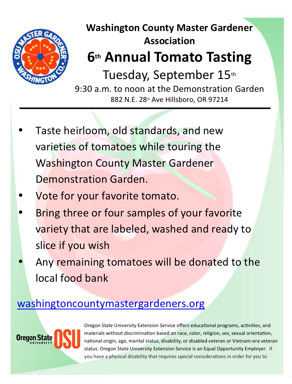 Tomato Tasting Time September 15 th, 9:30 am-noon !
