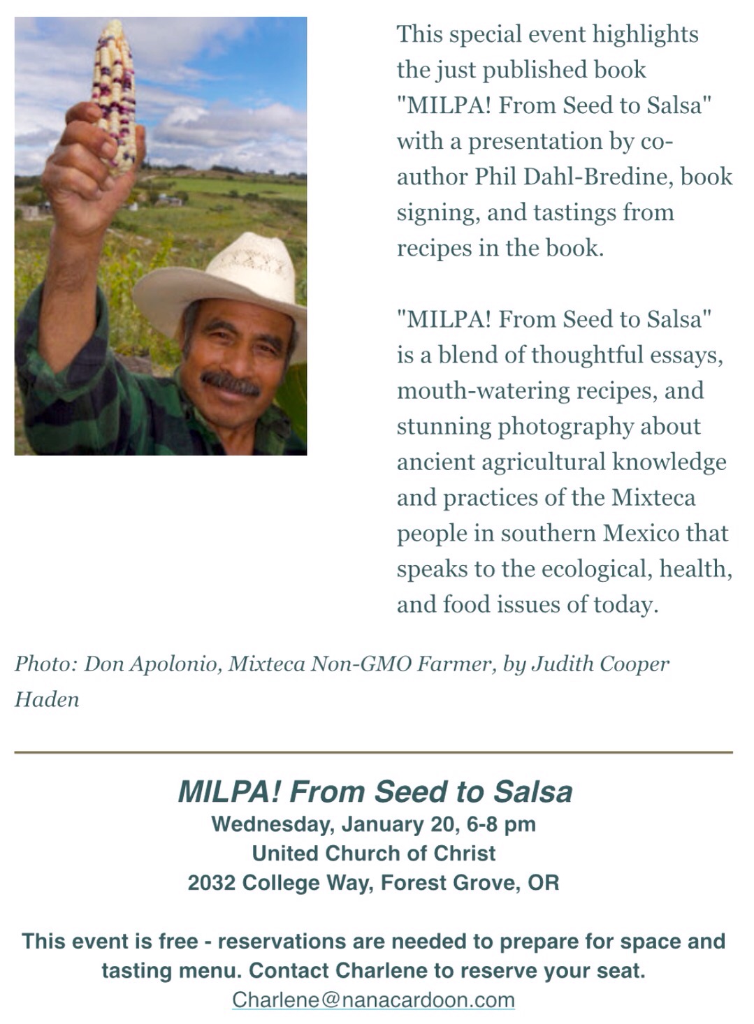 Milpa! From Seed to Salsa 01/20/2016 6:00-8:00 pm