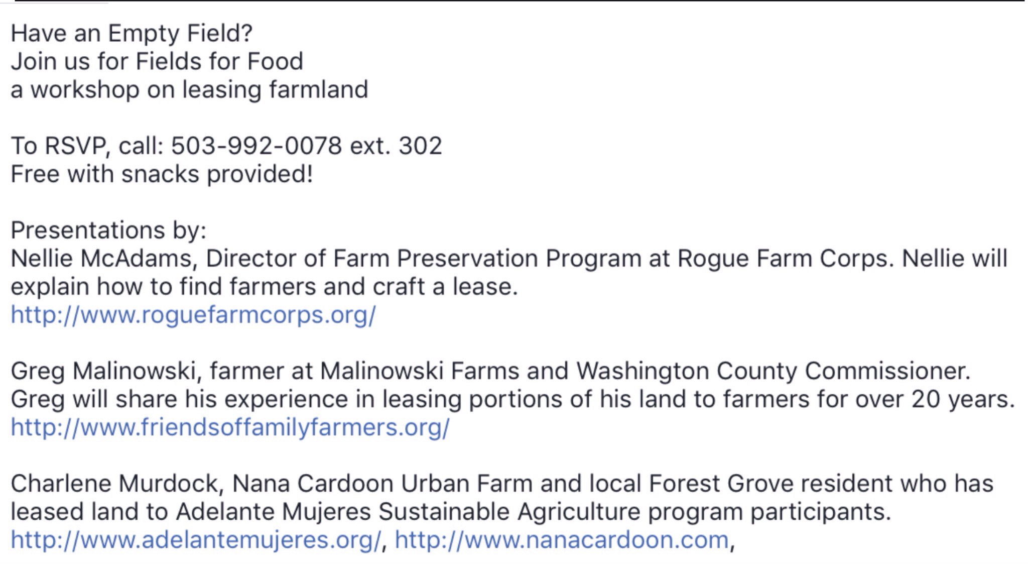 Fields for Food May 17, 2016. 6:00-8:00 pm St. Bede’s Episcopal church 1609 Elm St. Forest Grove, Oregon