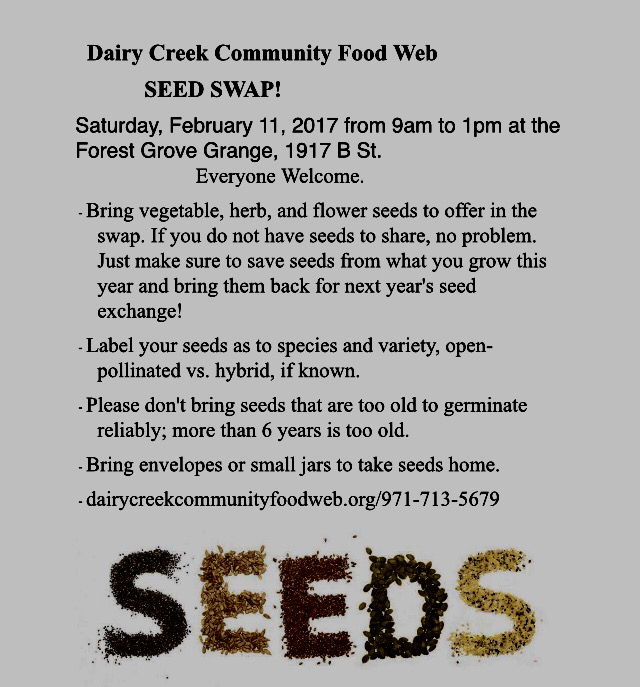 Seed Swap! February 11,2017 9:00am-1:00 pm Forest Grove Grange